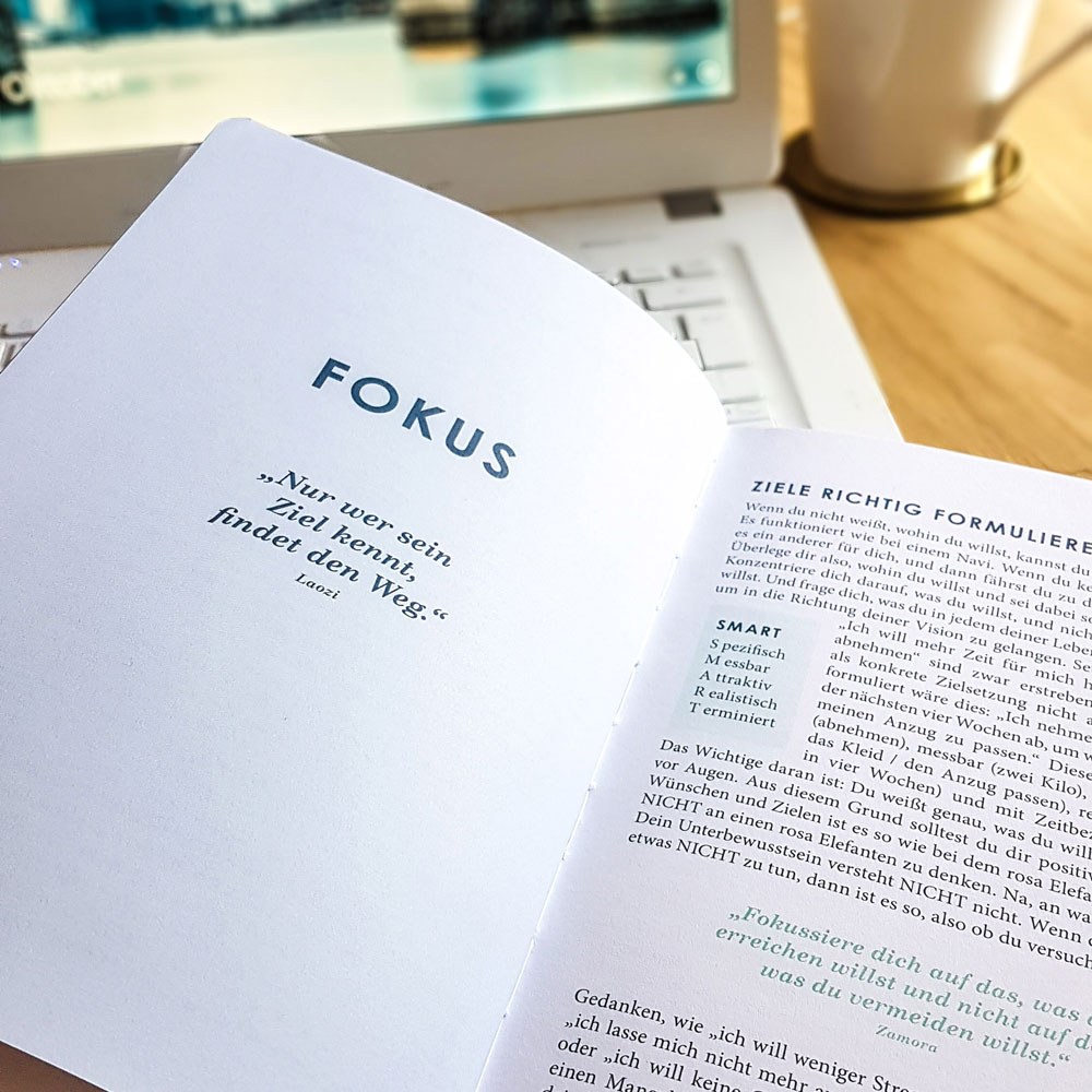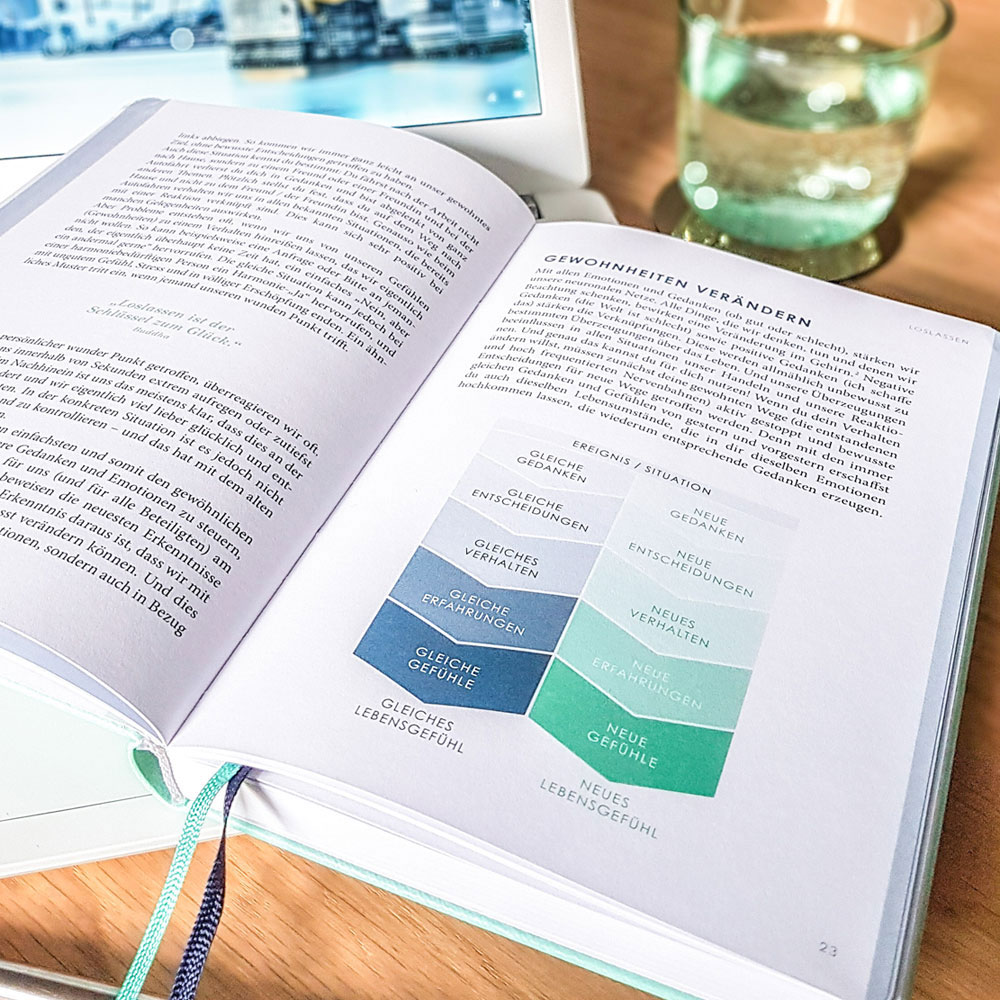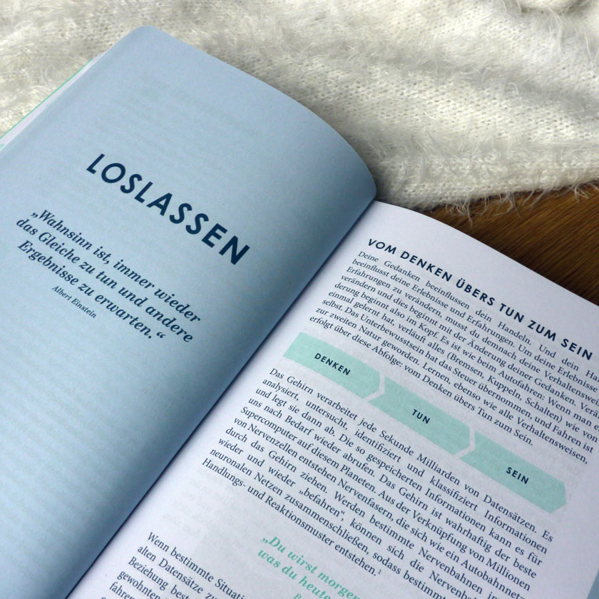 Es ist die einzigartige Kombination von einem Ratgeber mit wissenschaftlichen Erkenntnissen, Übungen zur Selbstreflexion und der langfristigen Anwendung im Alltag mit einem undatierte 52-Wochen-Planer.